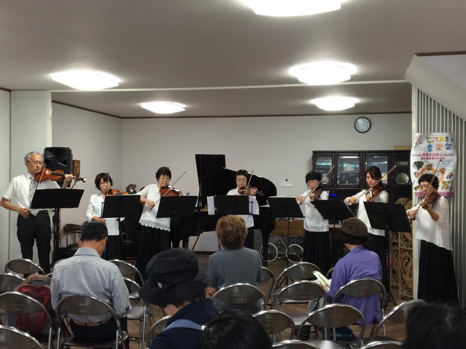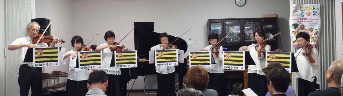 関西の音楽大好きな弟夫婦はストリングス仲間と自閉症の末松君に伴奏をお願いし、六甲おろし