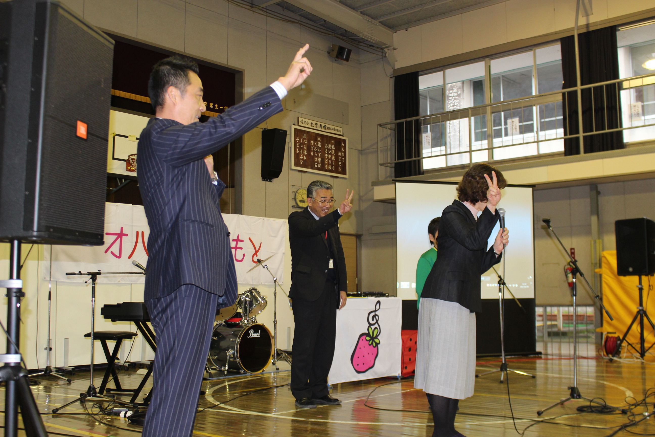 南ロータリー会長 漆島様と学校長と入部会長でオハイエ!