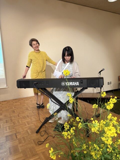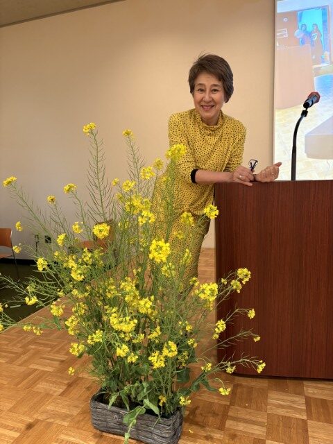 会場には司会の小出さんが菜の花を自然体に生けてくださいました🌼